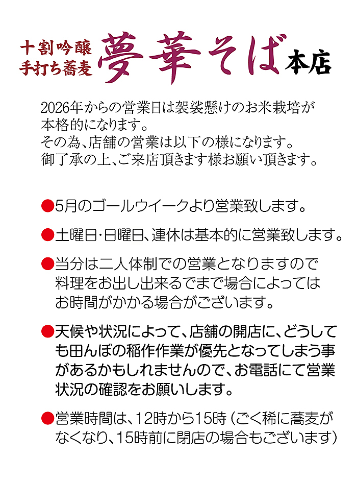 ホームページ URL https://yumehanasoba.com